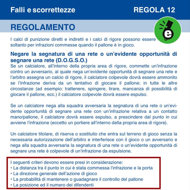 在此類判罰依據當中有一項明確的判斷依據為:進攻方向,是否構成明顯得分機會。舉個極端的例子,焦瓦內背身拿球,比塞克拉倒對手,這個時候是犯規,但不是紅牌,因為進攻球員不具備直接射門得分的理論依據。同樣的道理,在比塞克不是最后一名防守球員、且皮球正在向右側蘇契奇回追的所在方向發展的時候,也不具備直接得分的屬性。